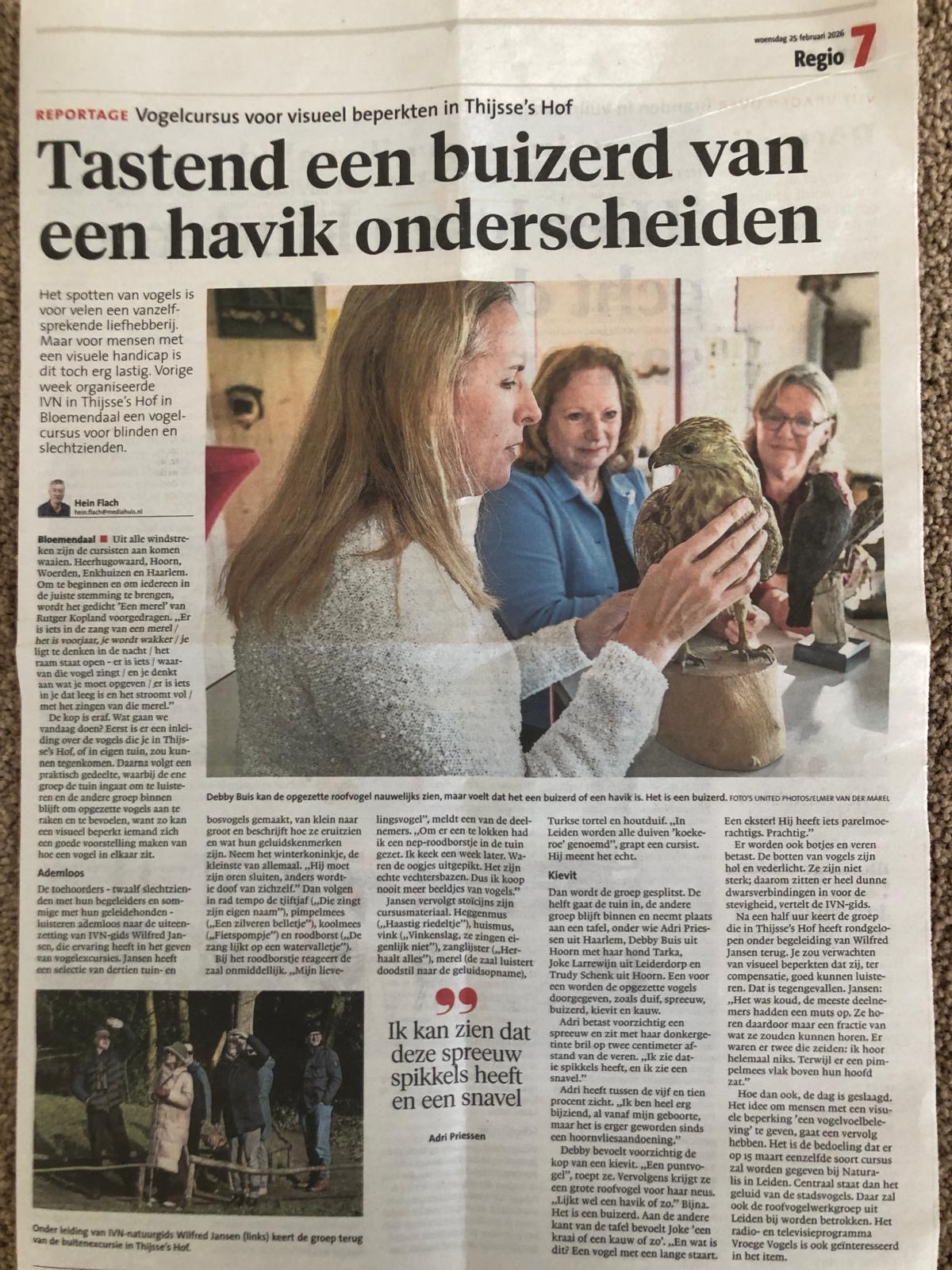 - Haarlems Dagblad – Vogelspotcursus voor visueel beperkten (24 februari 2026) – website